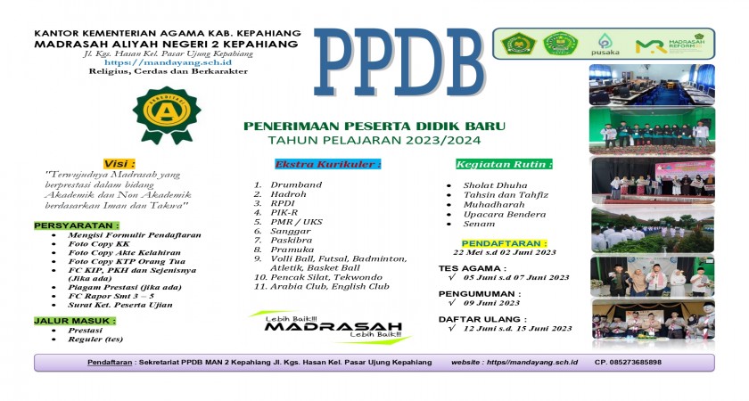 Informasi awal Penerimaan Peserta Didik Baru MAN 2 Kepahiang Tahun Pelajaran 2023/2024