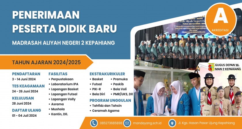 Berikut disampaikan informasi mengenai Penerimaan Peserta Didik Baru MAN 2 Kepahiang Tahun Pelajaran 2024/2025